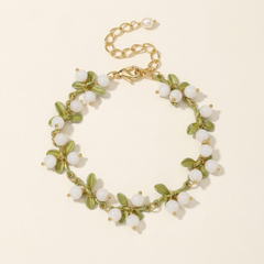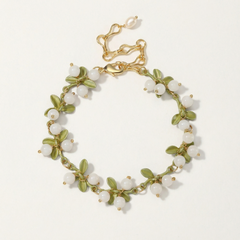 Små grønne blade og varme gulddetaljer giver et fint, botanisk udtryk.